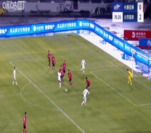 第83分钟,贺一然头球解围,但是方向出现错误,直接将球顶到自家门前,法比奥跟进轻松破门。国安队将比分锁定在4-0!