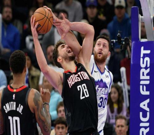 次节较量,杜兰特延续火热手感,他连续单打取分,火箭得以不断扩大分差。面对火箭的高压防守,爵士队后场进攻核心小将乔治频繁打铁和失误,休斯顿连续防守反击得手。半场打完,火箭以67比48领先,爵士单节以27比37落后。