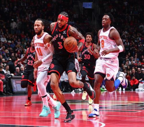 末节巴恩斯一条龙下快攻准备暴扣被布伦森一把拉下来,但裁判没有给犯规,现场球迷高呼裁判太烂了。英格拉姆的上篮被唐斯大帽,英格拉姆两个中投命中也完成30+,但尼克斯回应了两记三分,还剩3分钟英格拉姆还被要求继续打,他登场后感觉双眼都要闭起来打瞌睡了,猛龙进攻还是不中,尼克斯开始消耗时间,猛龙放弃比赛。