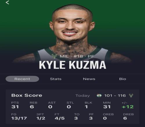 库兹马难得爆发,竟然投篮17中13,以高达约76%命中率轰下31分外加6板;小波特继续强力输出,独揽18分10板13助,三双到手。