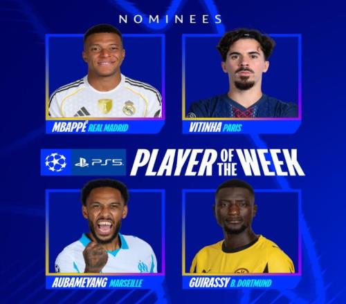 欧冠联赛阶段第5轮比赛全部战罢,欧冠官方公布了本轮最佳球员候选名单,姆巴佩领衔,维蒂尼亚、吉拉西、奥巴梅扬在列。欧冠官方本轮最佳球员候选姆巴佩 上演大四喜助皇家马德里客