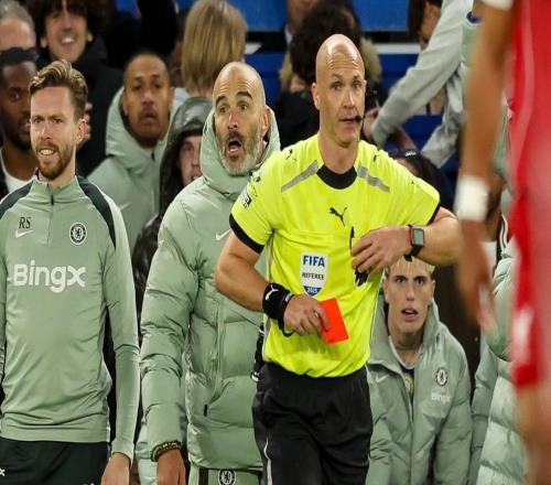 英超第13轮,切尔西主场1-1战平阿森纳,此役安东尼-泰勒向切尔西球员出示了一张红牌和一张黄牌,据统计,切尔西在安东尼-泰勒执法下场均拿牌次数最多。据WhoScored统计,切尔西在主裁