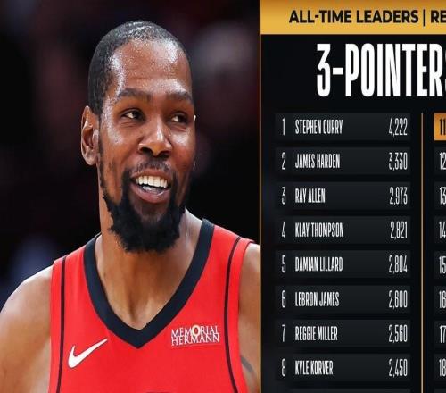 北京时间今日,在NBA常规赛中,休斯顿火箭队在客场背靠背对阵底特律活塞队。在比赛进行到第二节时,杜兰特命中了本场比赛的第二记三分。这也让他的生涯总三分命中数达到2283记,超